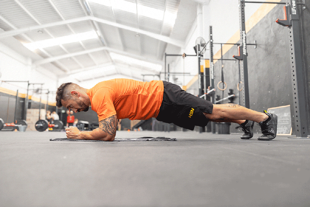 An exercise that works the deep core, shoulders, triceps, and overall stability.