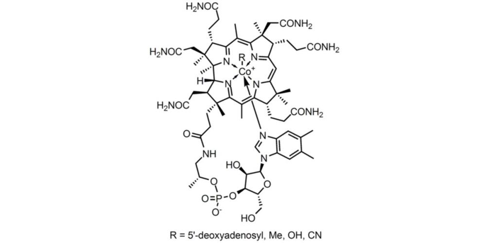Vitamin B12 is a hydrosoluble vitamin, chemically characterised by being a corrinoid with a cobalt atom in the centre of the corrine ring.