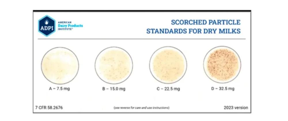 ‘Scorched particles’ form when whey proteins are burned or caramelised during production, which can impact their flavour, solubility, and nutritional value. This is measured in milligrams per 25 grams of product, with classifications ranging from ‘Extra’ (less than 7.5 mg) to ‘Third Quality’ (more than 22.5 mg).