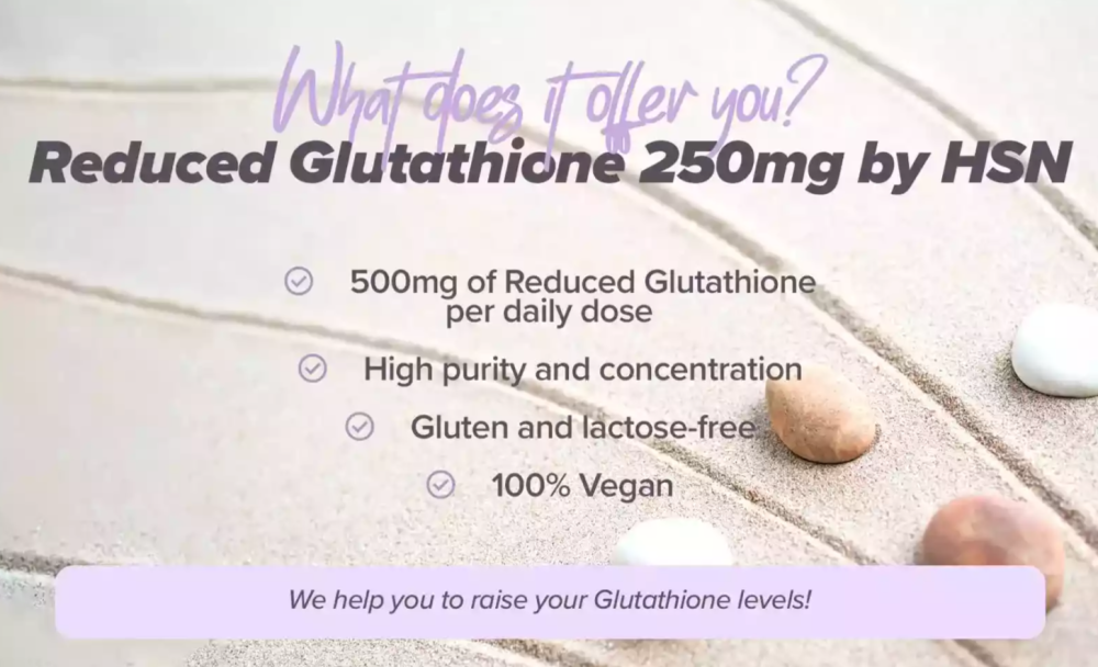 Reduced glutathione 250mg formula by HSN has been supplemented by: